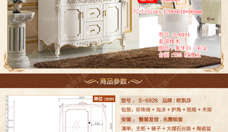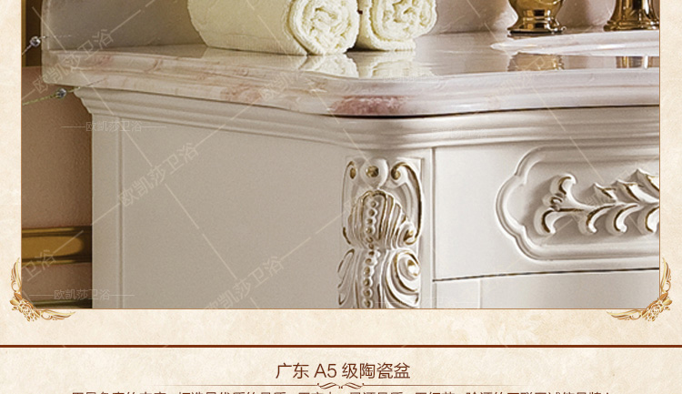 佛山市歐凱莎歐式浴室柜廠家,8年專業(yè)生產設計浴室柜,采用優(yōu)質進口橡木,進口純天然大理石,同類產品比同行優(yōu)惠10%,產品防潮防水,健康環(huán)保無甲醛,安全有保障,歡迎來電定購。