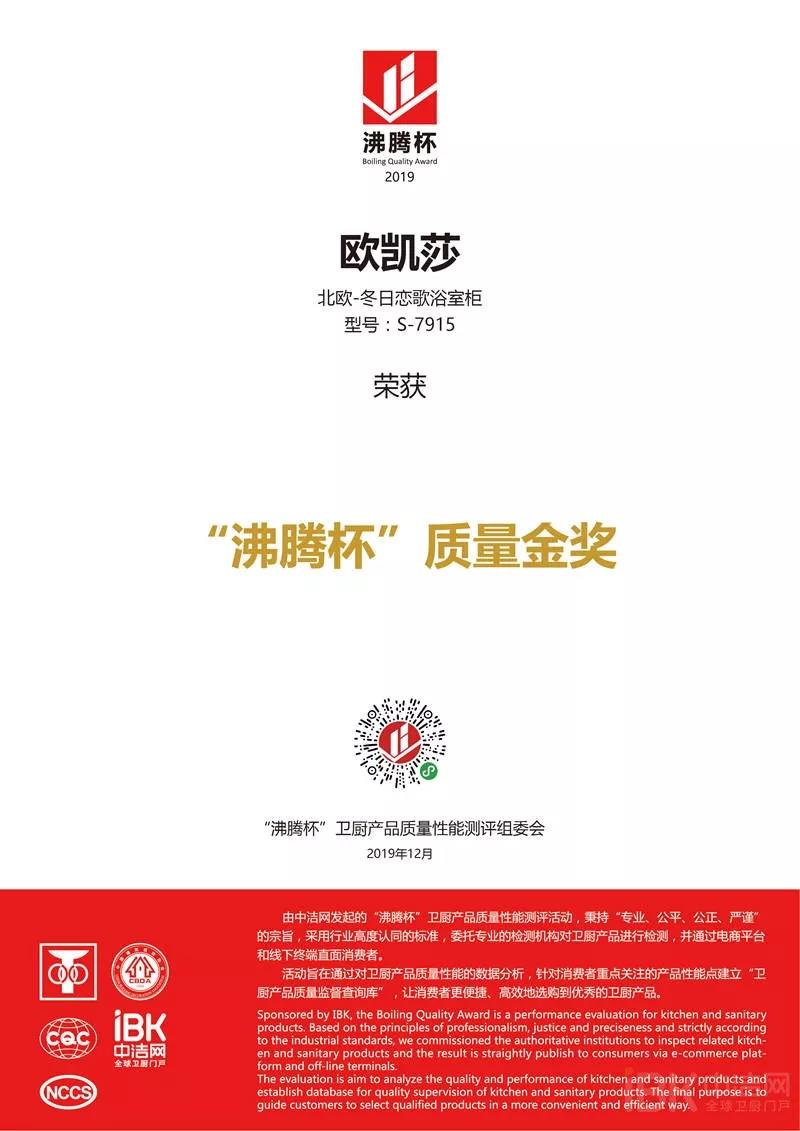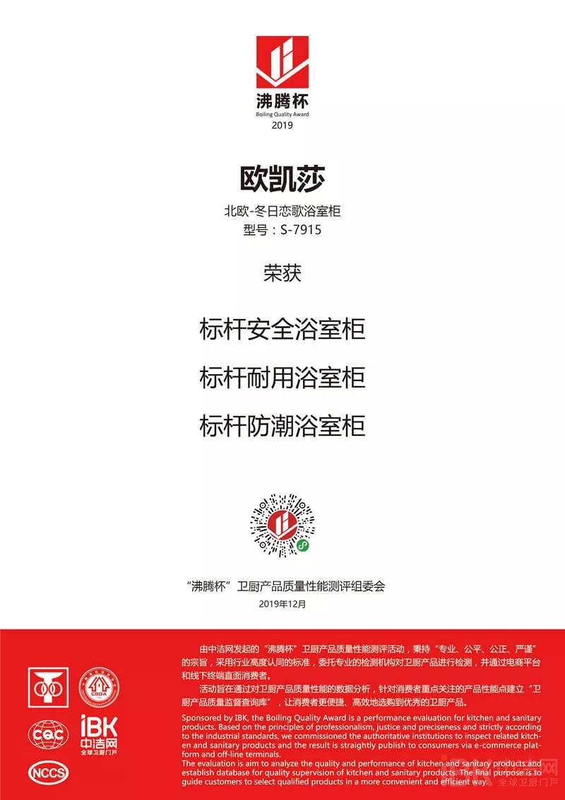 “標桿防潮浴室柜”三項標桿大獎,又一次證明了歐凱莎無可撼動的品質實力!