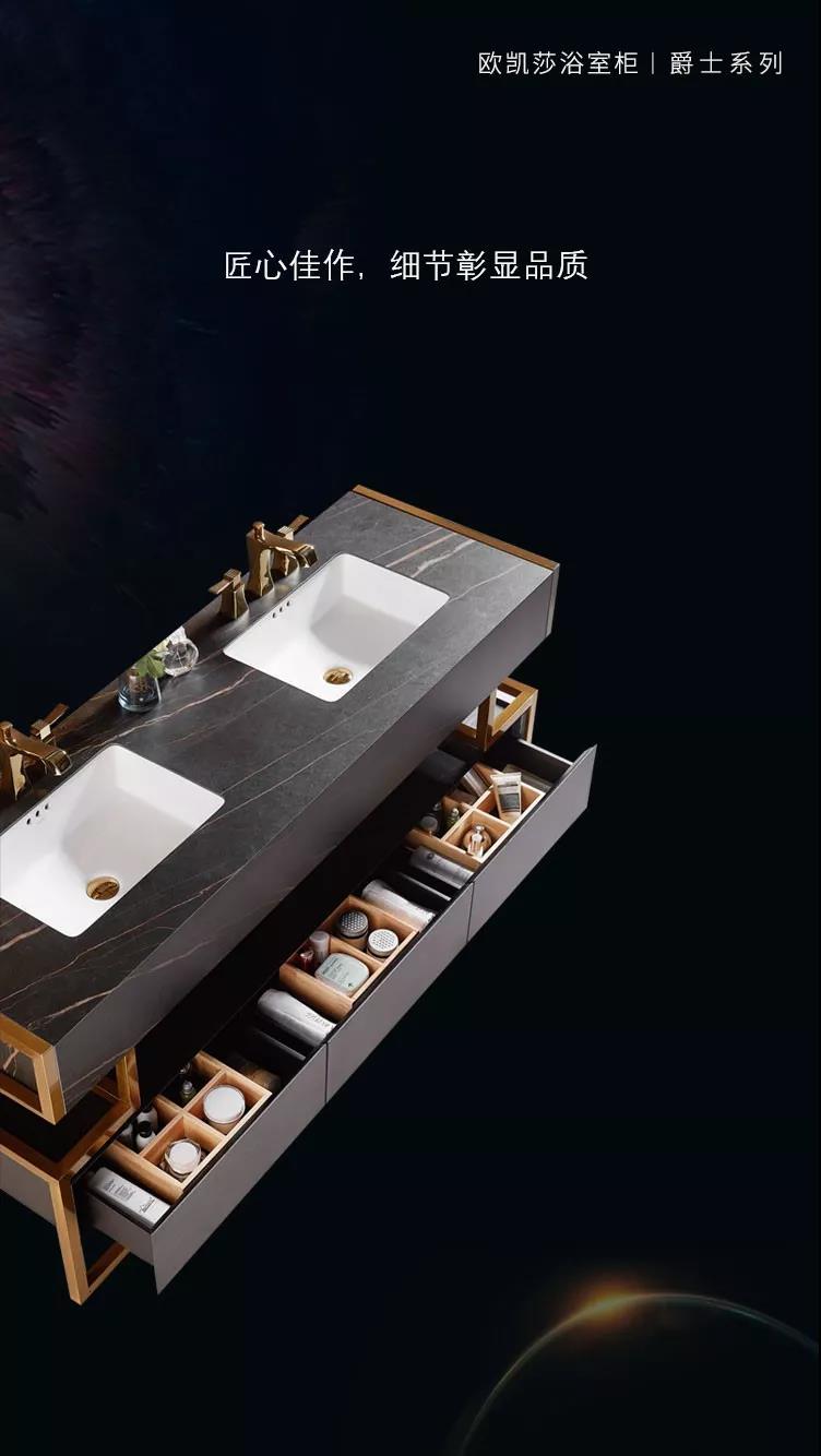 穩(wěn)重奢華,巖值非凡,爵士浴室柜所使用的黑金巖板,