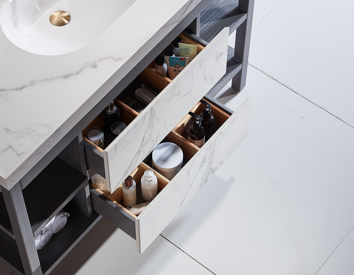 遠(yuǎn)觀是極簡的浴室柜,打開是大容量的收納空間,