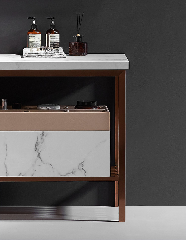 匠心鑄造,細(xì)節(jié)體現(xiàn)品質(zhì),白色大理石臺面配陶瓷臺下盆,
